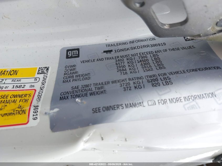 CHEVROLET TAHOE 5.3 2024 р.в., Повний привід (1GNSKSKD2RR386919) з США
