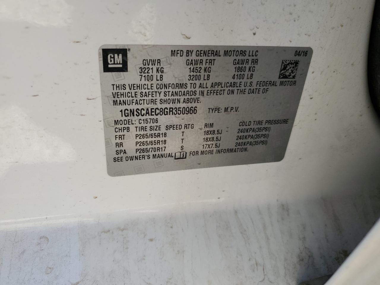 Колір БілийЦиліндри 8Привід Задній привідVIN 1GNSCAEC8GR350966Стан Заводиться та їде (перевірено)Ушкодження Передня або задняДата аукціону 2025-11-03