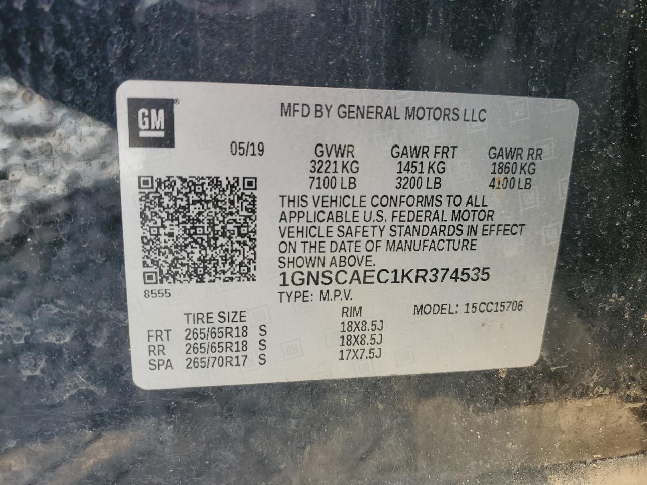 CHEVROLET TAHOE 5.3 2019 р.в., Задній привід (1GNSCAEC1KR374535) з США