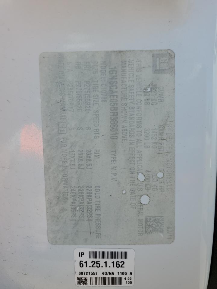 Колір БілийЦиліндри 8Привід Задній привідVIN 1GNSCAE05BR388010Стан Заводиться та їде (перевірено)Ушкодження Передня або задняДата аукціону 2025-11-03