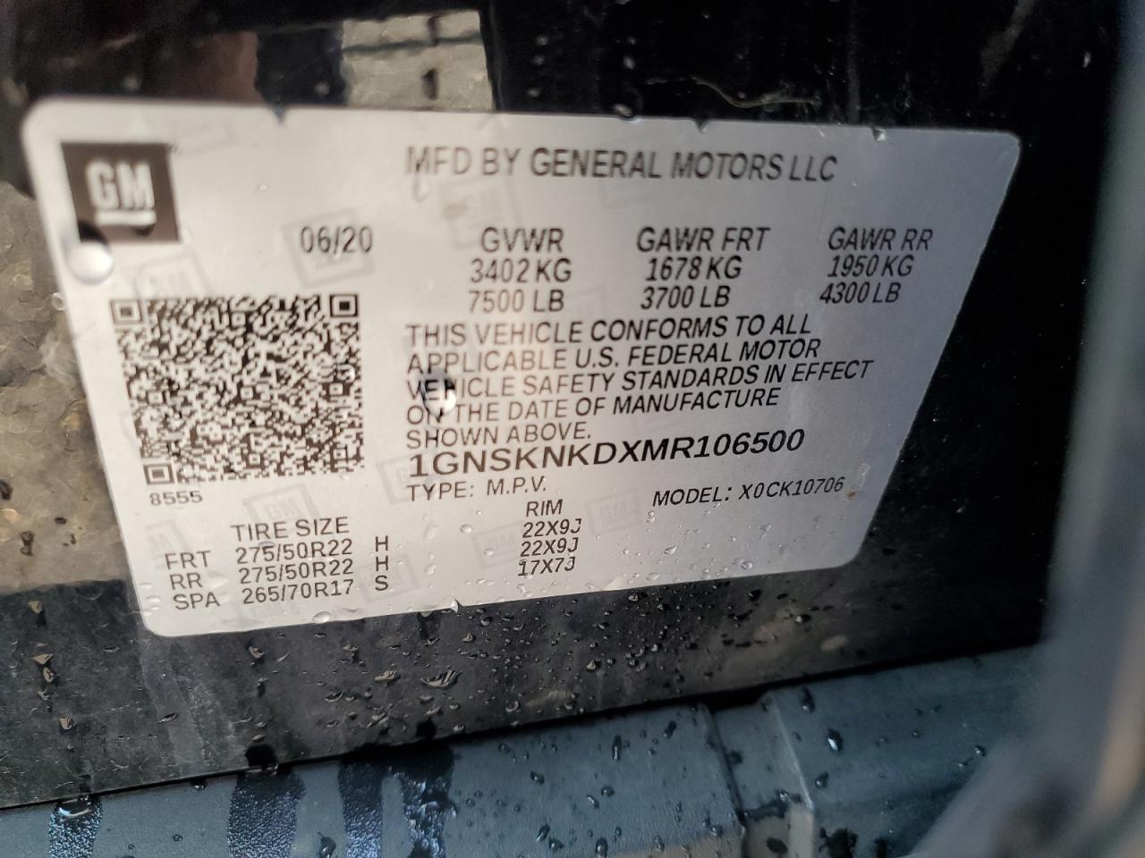 Колір ЧорнийЦиліндри 8Привід 4x4 з заднім приводомVIN 1GNSKNKDXMR106500Стан Заводиться та їде (перевірено)Ушкодження НезначніДата аукціону 2025-11-04