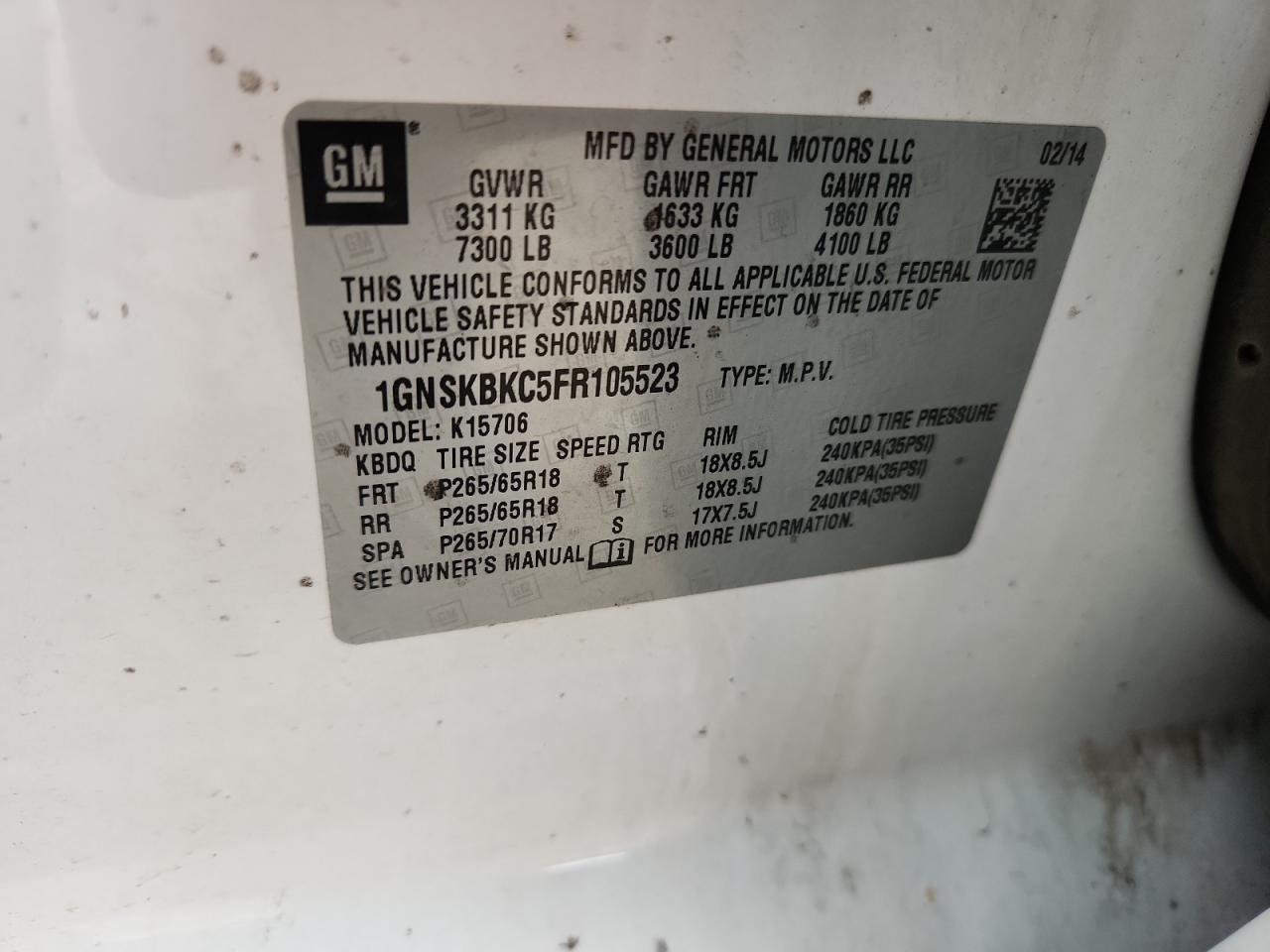 2015 CHEVROLET TAHOE LT