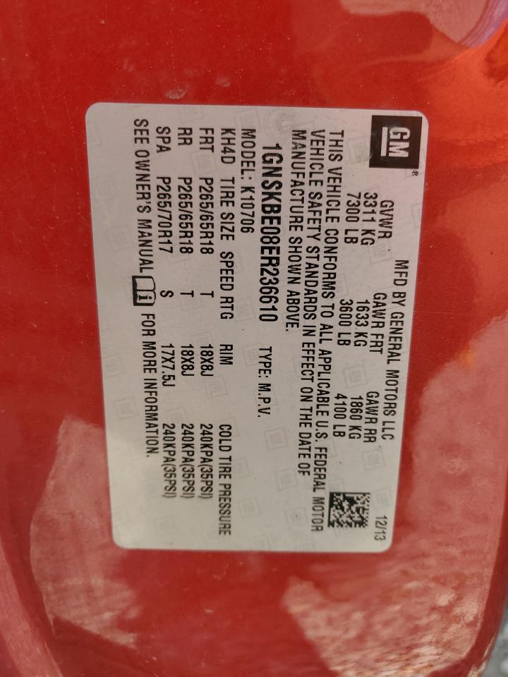 Колір ЧервонийЦиліндри 8Привід 4x4 з заднім приводомVIN 1GNSKBE08ER236610Стан Заводиться та їде (перевірено)Ушкодження ГрадДата аукціону 2025-11-10