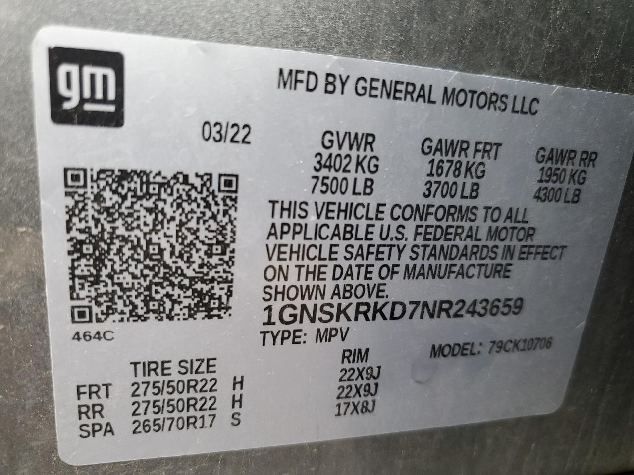 Колір СірийЦиліндри 8Привід 4x4 з заднім приводомVIN 1GNSKRKD7NR243659Стан Заводиться та їде (перевірено)Ушкодження Передня або задня
