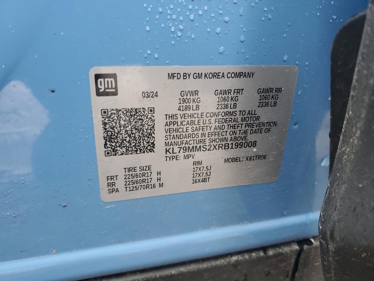 Колір СинійЦиліндри 3VIN KL79MMS2XRB199008Стан НевідомоУшкодження Передня або задняДата аукціону 2025-11-12