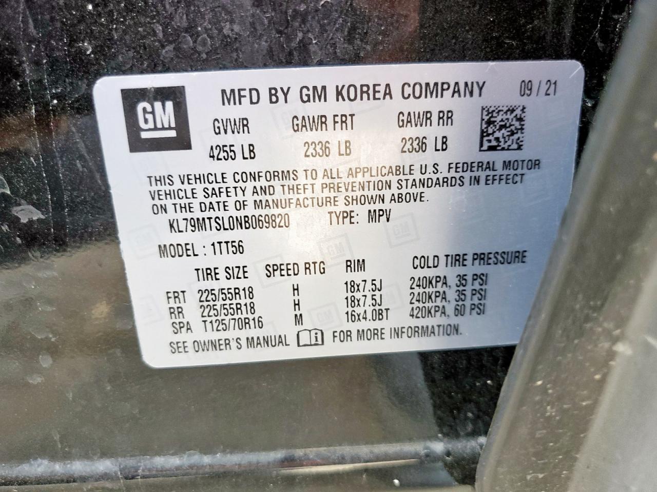 Колір ЧорнийЦиліндри 3VIN KL79MTSL0NB069820Стан НевідомоУшкодження Передня або задняДата аукціону 2025-11-06