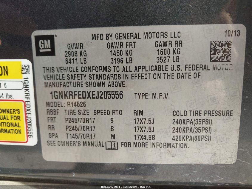 CHEVROLET TRAVERSE 3.6 2014 р.в., Передній привід (1GNKRFEDXEJ205556) з США