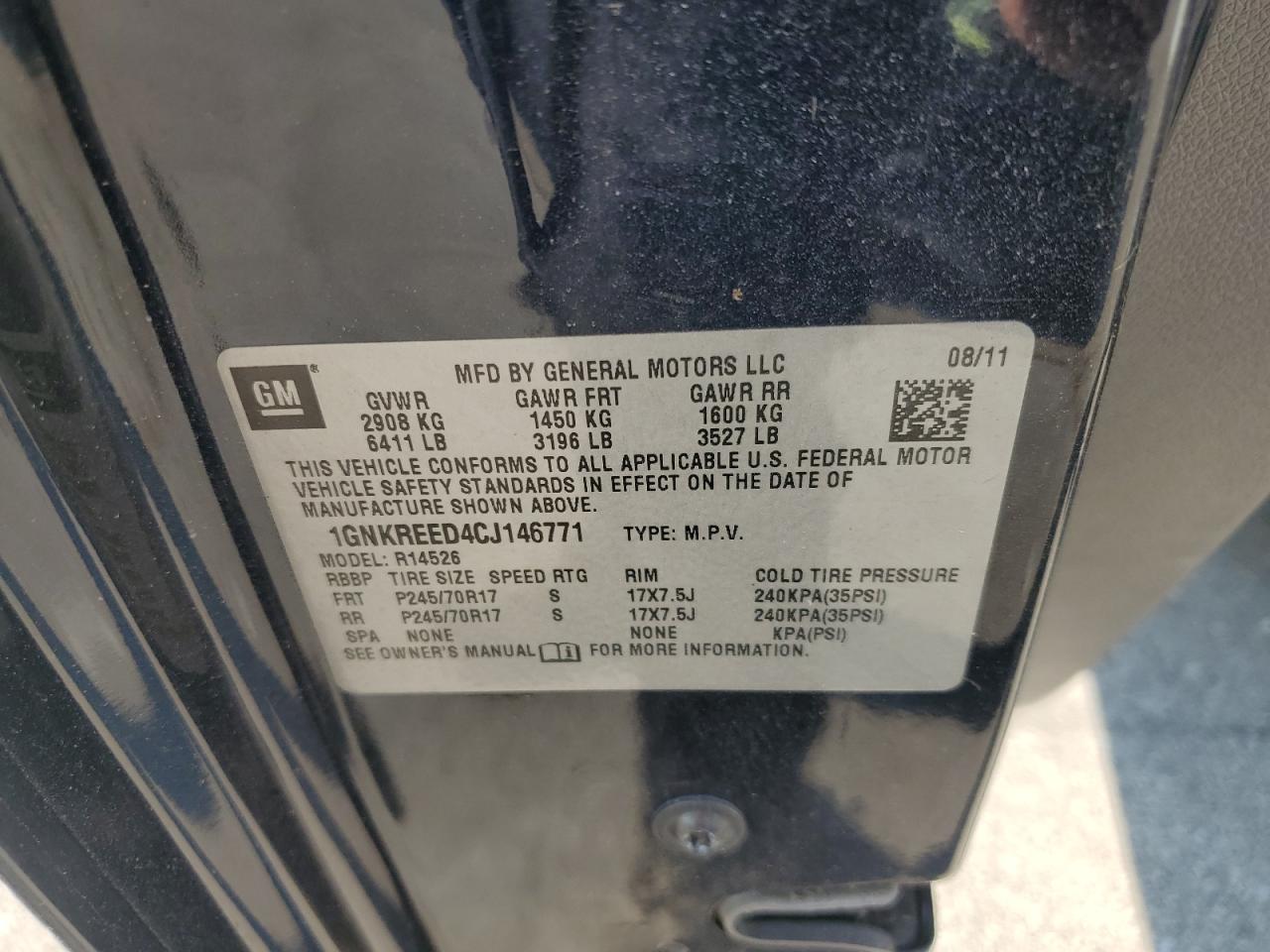 Колір СинійЦиліндри 6VIN 1GNKREED4CJ146771Стан НевідомоУшкодження Звичайний зносДата аукціону 2025-11-03