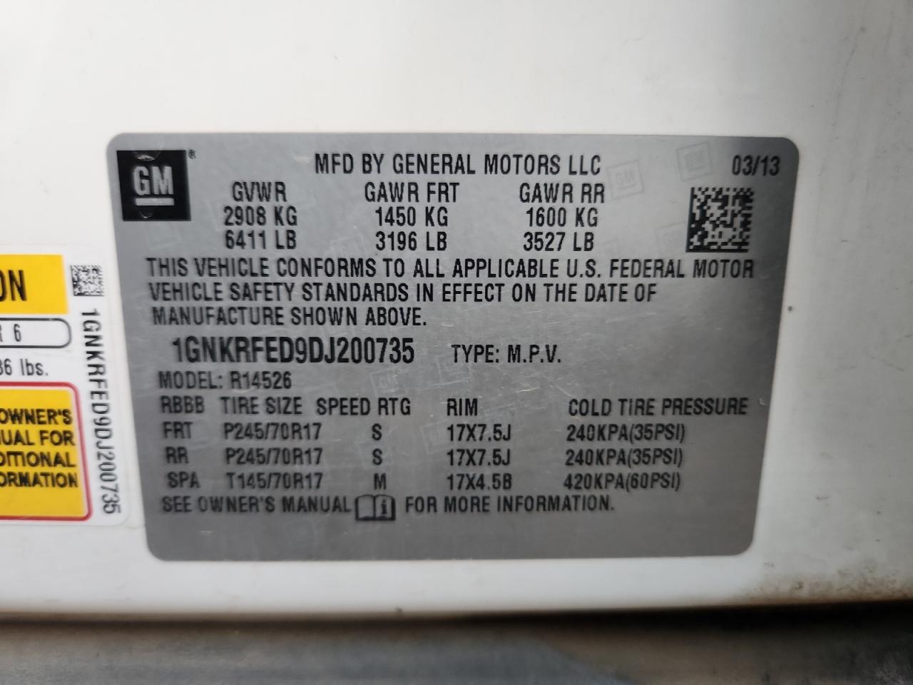 Колір БілийЦиліндри 6VIN 1GNKRFED9DJ200735Стан Заводиться та їде (перевірено)Ушкодження Передня або задня