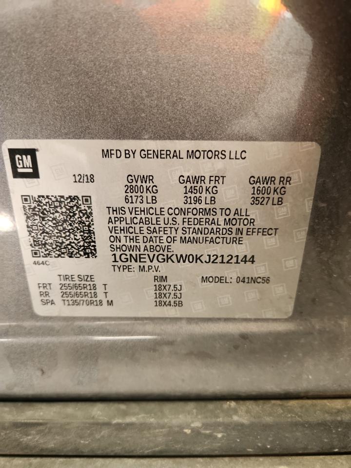 CHEVROLET TRAVERSE 3.6 2019 р.в., Повний привід (1GNEVGKW0KJ212144) з США