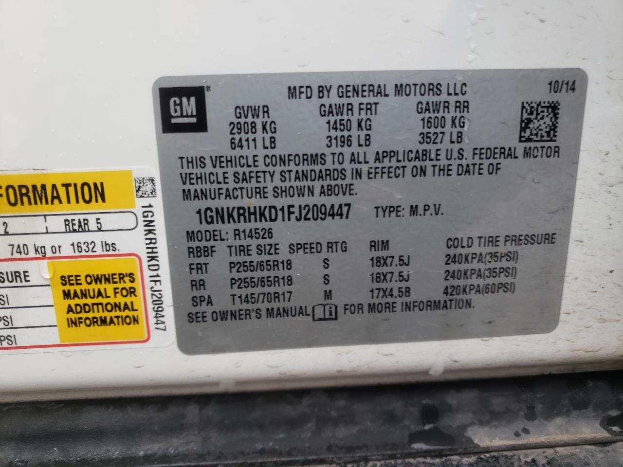 Колір БілийЦиліндри 6VIN 1GNKRHKD1FJ209447Стан НевідомоУшкодження Незначні
