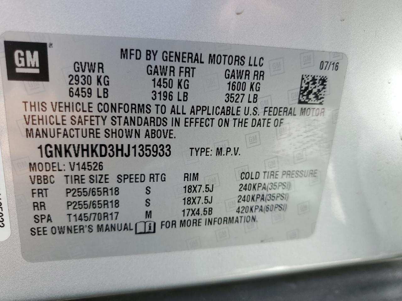 CHEVROLET TRAVERSE 3.6 2017 р.в., Повний привід (1GNKVHKD3HJ135933) з США