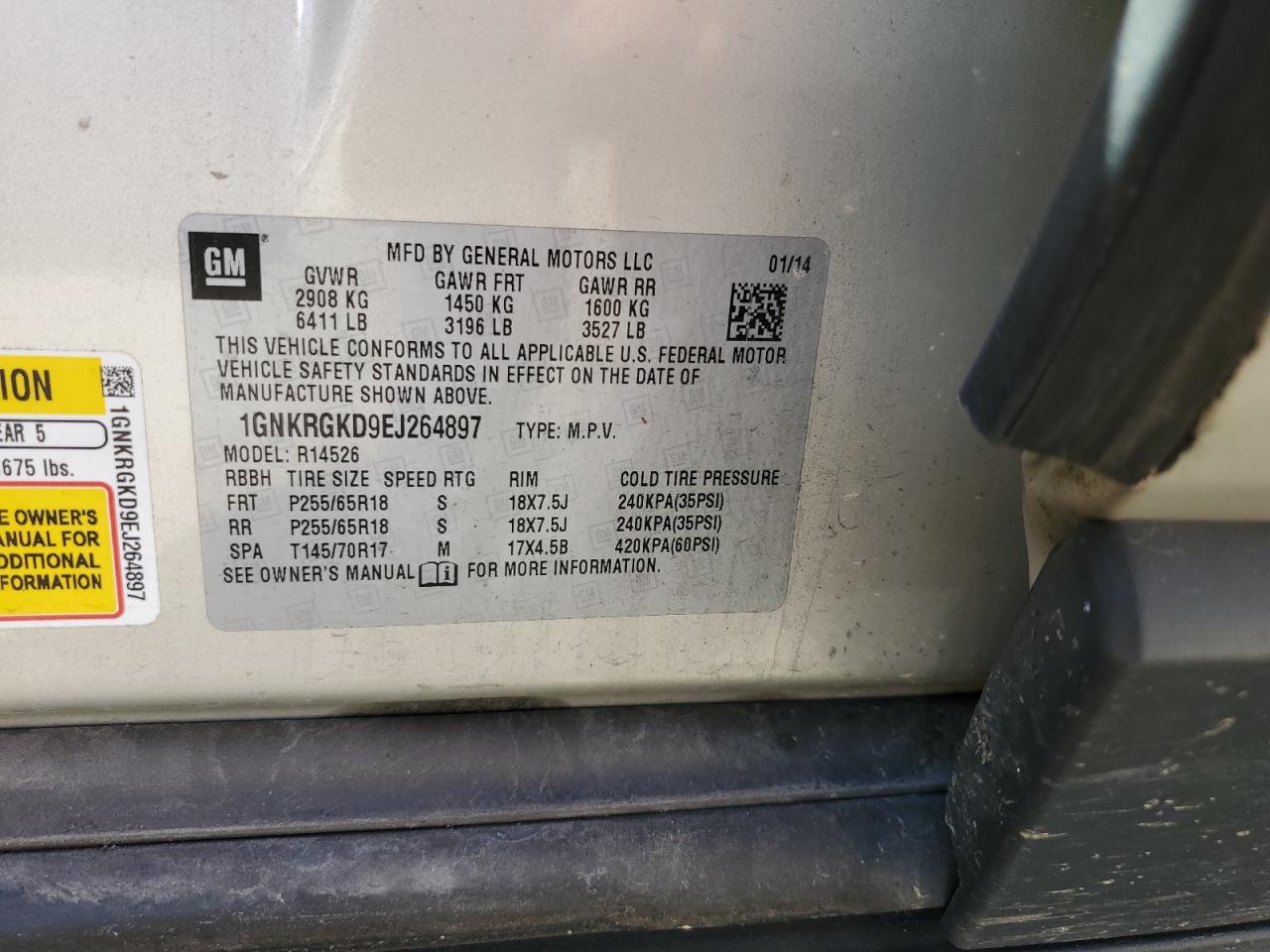Колір БежевийЦиліндри 6VIN 1GNKRGKD9EJ264897Стан НевідомоУшкодження З боків