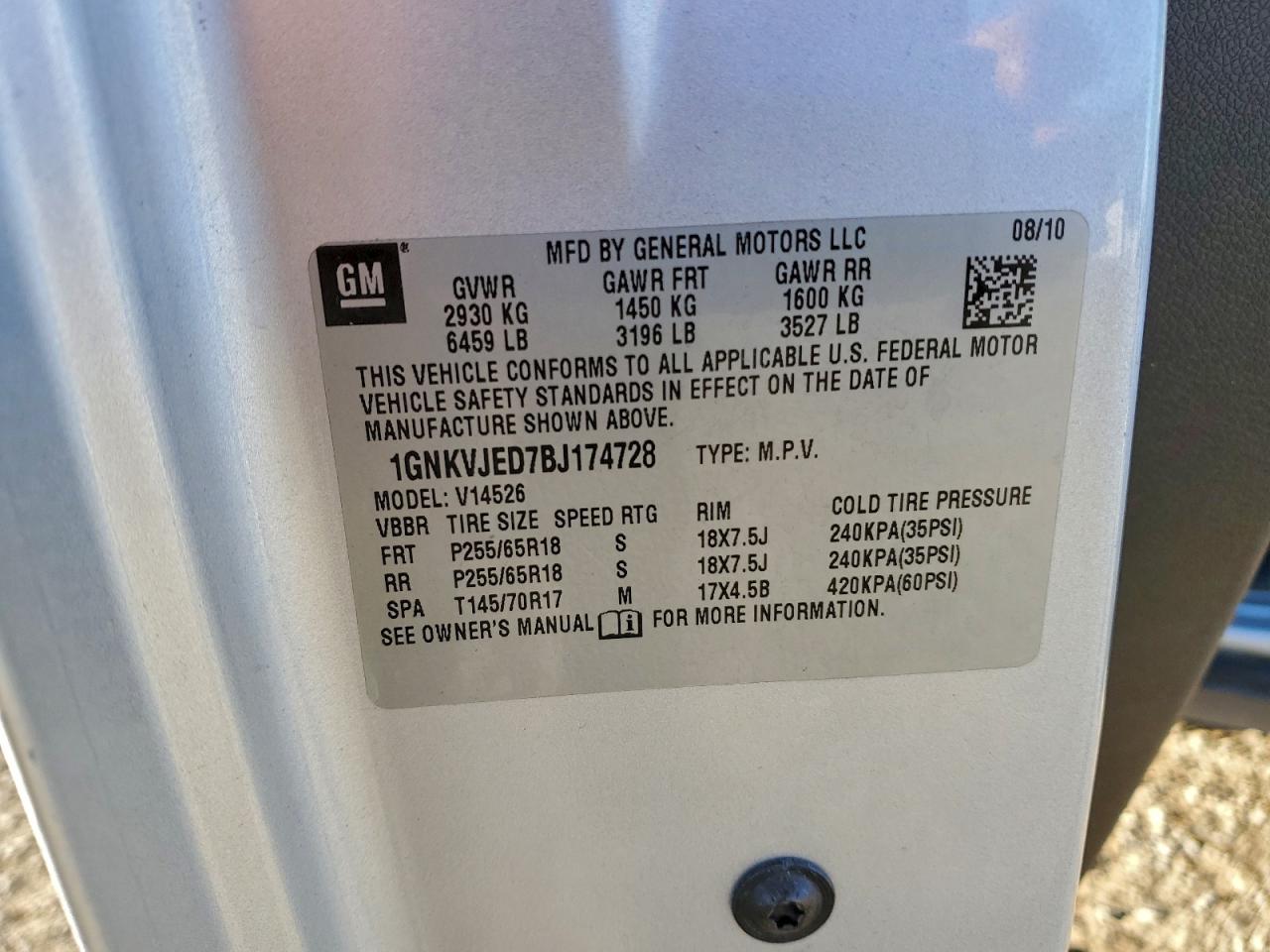 Колір СрібнийЦиліндри 6Привід Повний привідVIN 1GNKVJED7BJ174728Стан Заводиться та їде (перевірено)Ушкодження Передня або задня
