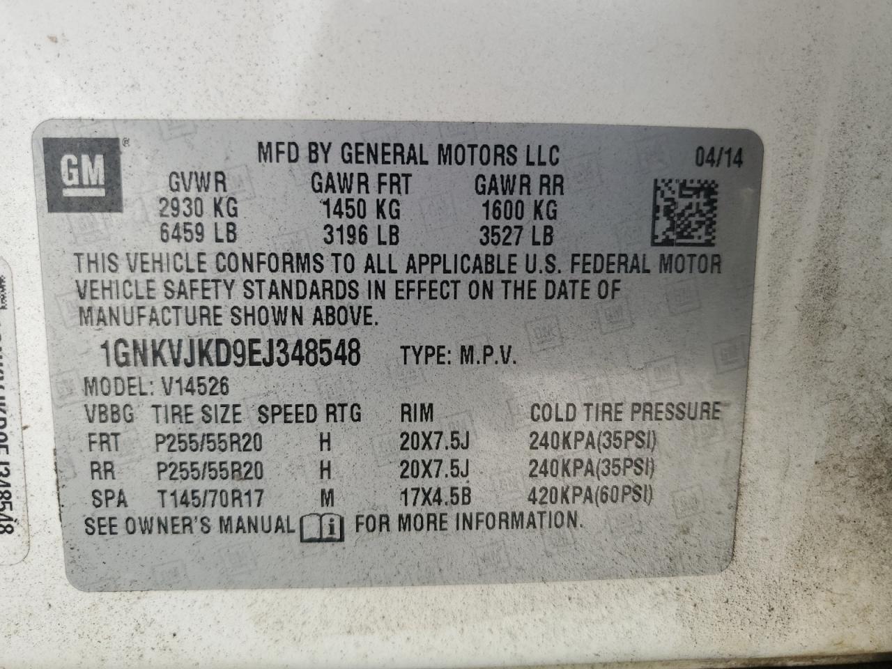 CHEVROLET TRAVERSE 3.6 2014 р.в., Повний привід (1GNKVJKD9EJ348548) з США