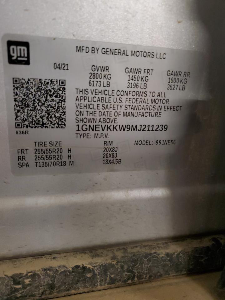 CHEVROLET TRAVERSE 3.6 2021 р.в., Повний привід (1GNEVKKW9MJ211239) з США
