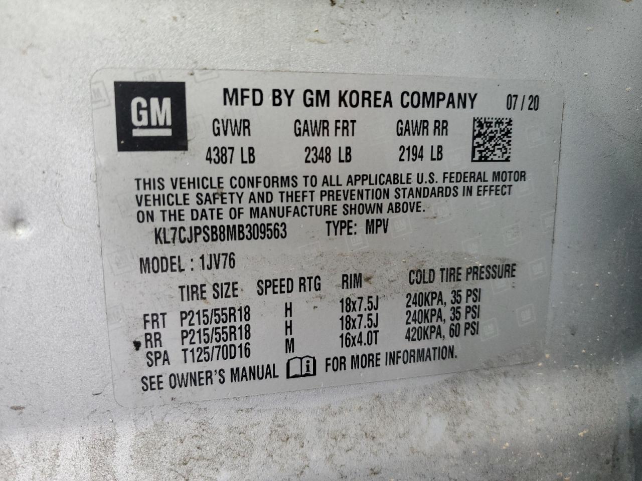 2021 CHEVROLET TRAX AWD LS