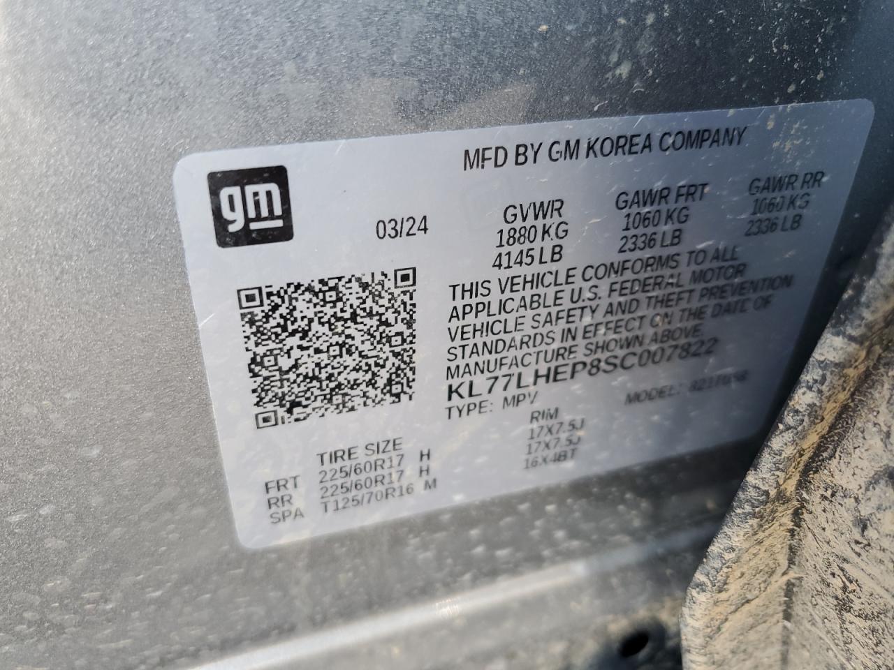 Колір СрібнийЦиліндри 3VIN KL77LHEP8SC007822Стан Заводиться та їде (перевірено)Ушкодження Передня або задняДата аукціону 2025-11-07