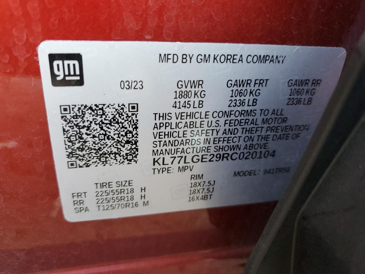 Колір ЧервонийЦиліндри 3VIN KL77LGE29RC020104Стан НевідомоУшкодження Передня або задня