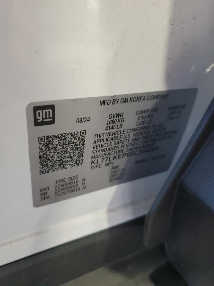 Колір БілийЦиліндри 3VIN KL77LKEP6SC104269Стан Заводиться та їде (перевірено)Ушкодження Передня або задняДата аукціону 2025-11-07
