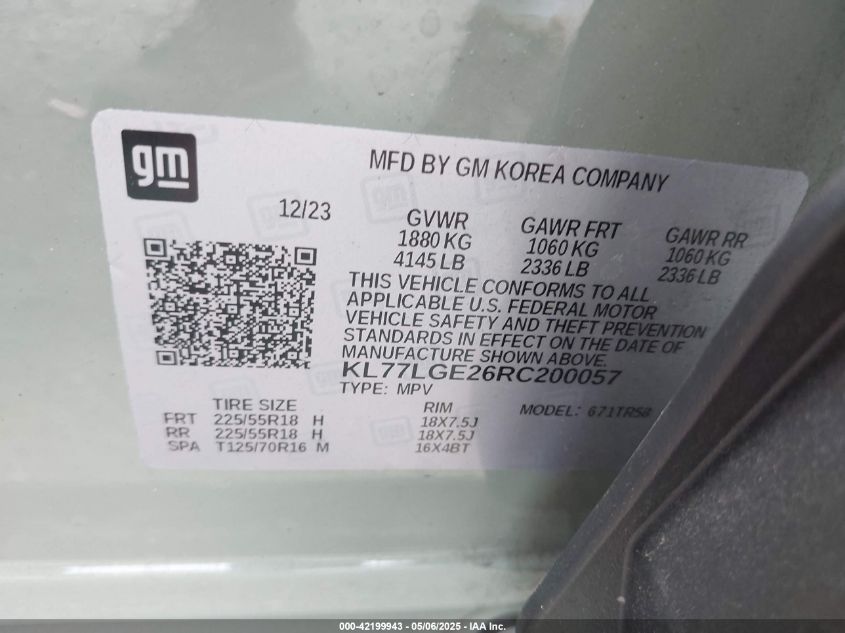 CHEVROLET TRAX 1.2 2024 р.в., Передній привід (KL77LGE26RC200057) з США