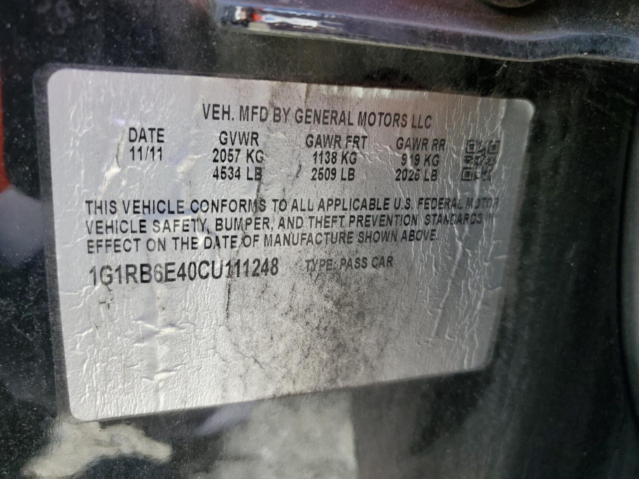 Колір ЧорнийЦиліндри 4VIN 1G1RB6E40CU111248Стан Заводиться та їде (перевірено)Ушкодження Передня або задняДата аукціону 2025-11-03