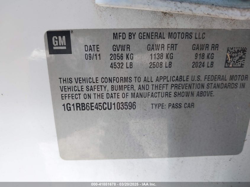 CHEVROLET VOLT 1.4 2012 р.в., Передній привід (1G1RB6E45CU103596) з США