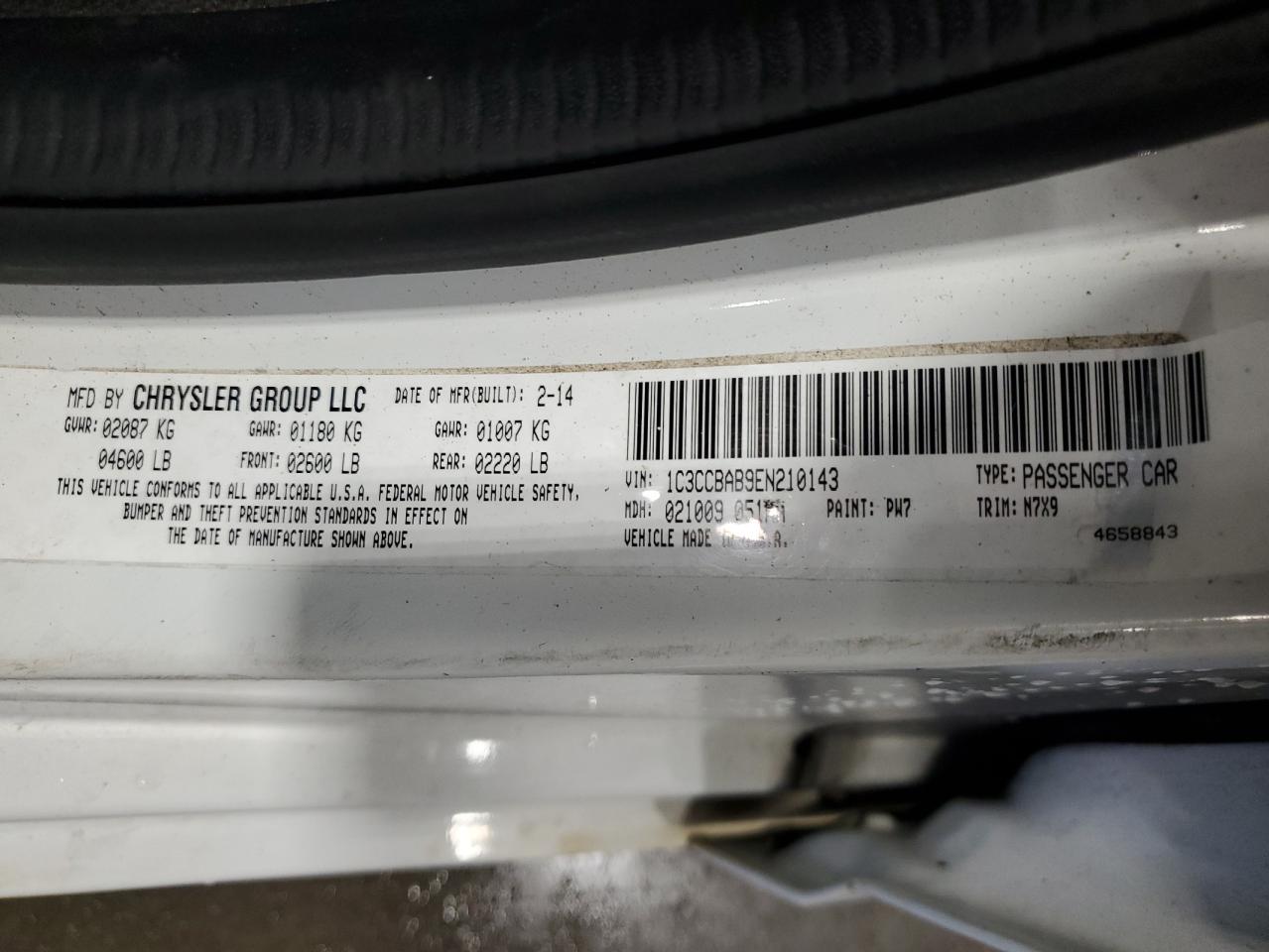 Колір БілийЦиліндри 4VIN 1C3CCBAB9EN210143Стан Заводиться та їде (перевірено)Ушкодження Передня або задня