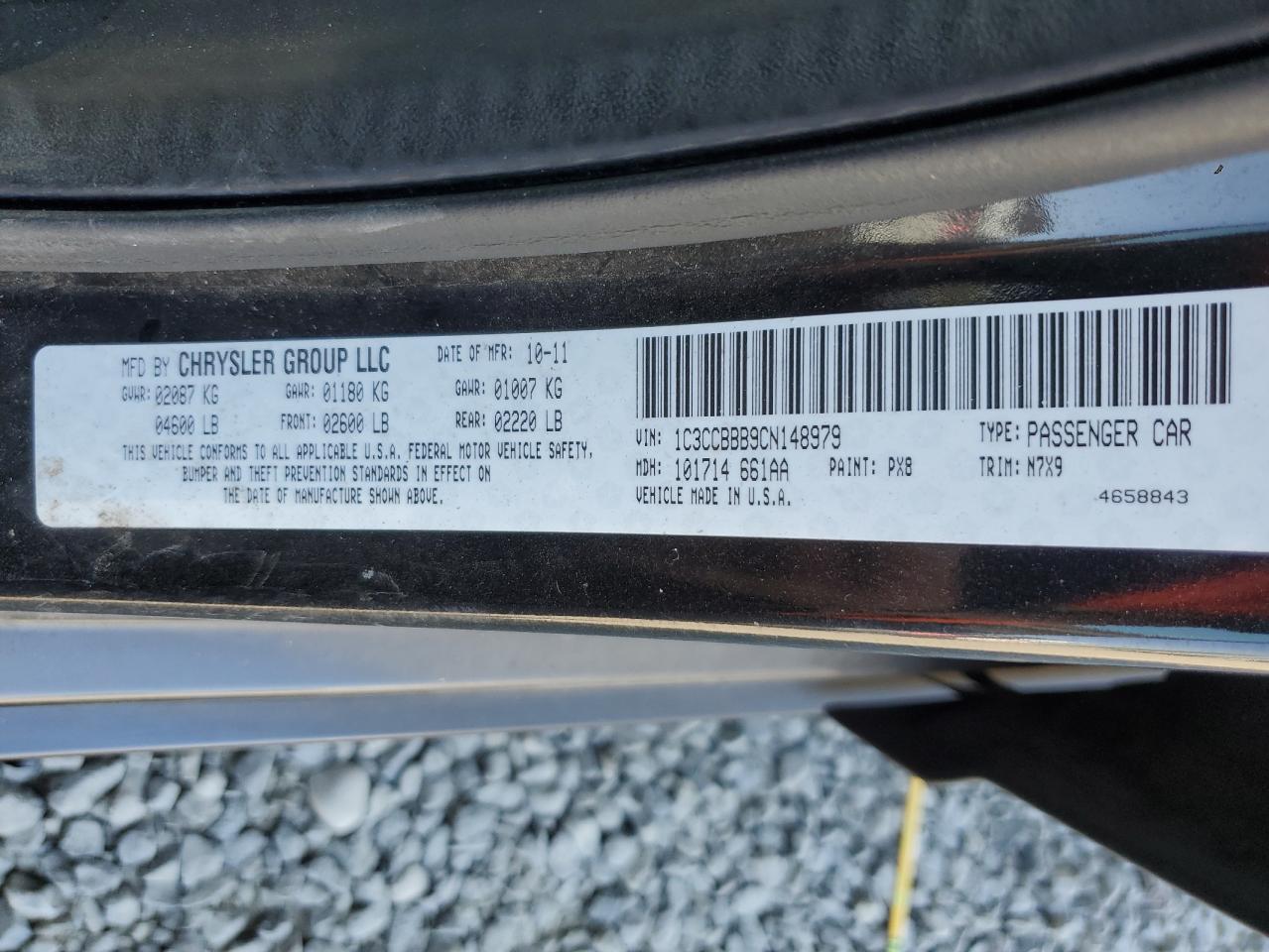 Колір ЧорнийЦиліндри 4VIN 1C3CCBBB9CN148979Стан ЗаводитьсяУшкодження Передня або задня