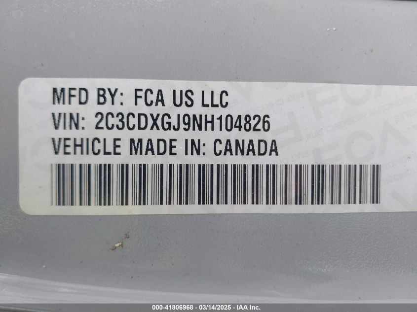 Колір СірийЦиліндри 8Привід Задній привідVIN 2C3CDXGJ9NH104826Стан СтаціонарноУшкодження По всьому автоДата аукціону 2025-11-19