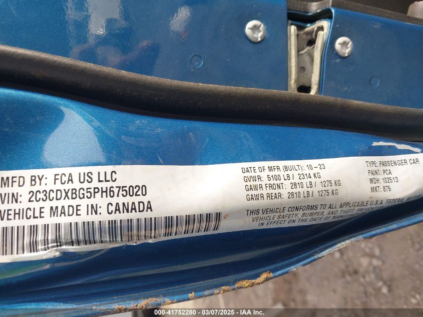 DODGE CHARGER 3.6 2023 р.в., Задній привід (2C3CDXBG5PH675020) з США