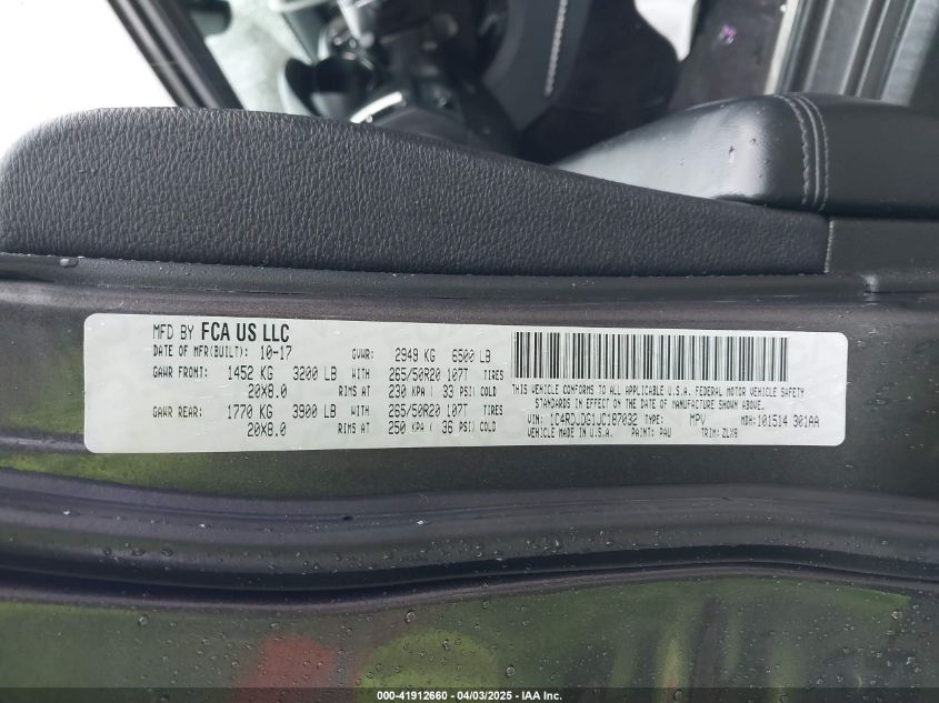 Колір СірийЦиліндри 6Привід Повний привідVIN 1C4RDJDG1JC187032Стан Заводиться та їде (перевірено)Ушкодження Незначні