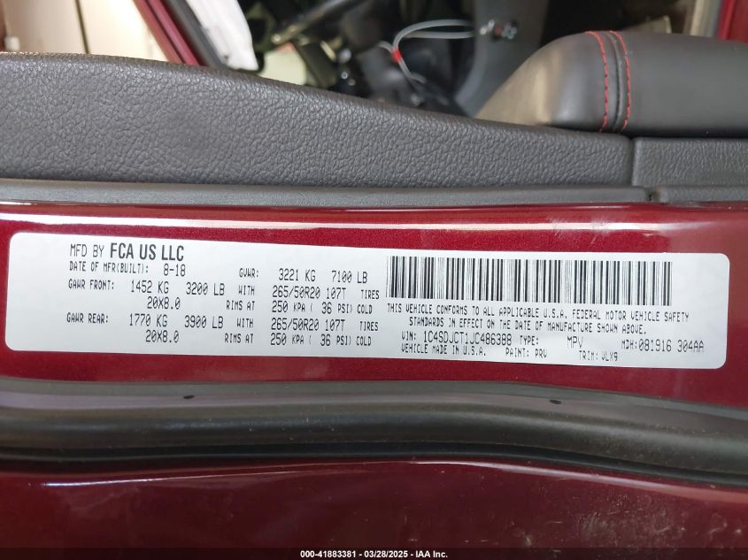 Колір ЧервонийЦиліндри 8Привід Повний привідVIN 1C4SDJCT1JC486388Стан Заводиться та їде (перевірено)Ушкодження Передня ліва