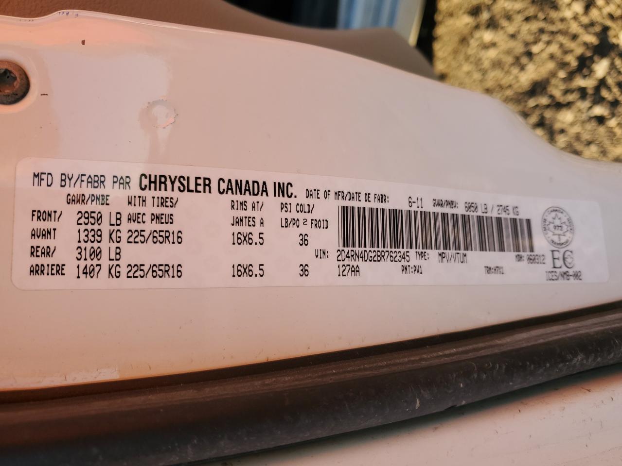 Колір БілийЦиліндри 6VIN 2D4RN4DG2BR762345Стан Заводиться та їде (перевірено)Ушкодження Передня або задняДата аукціону 2025-11-11