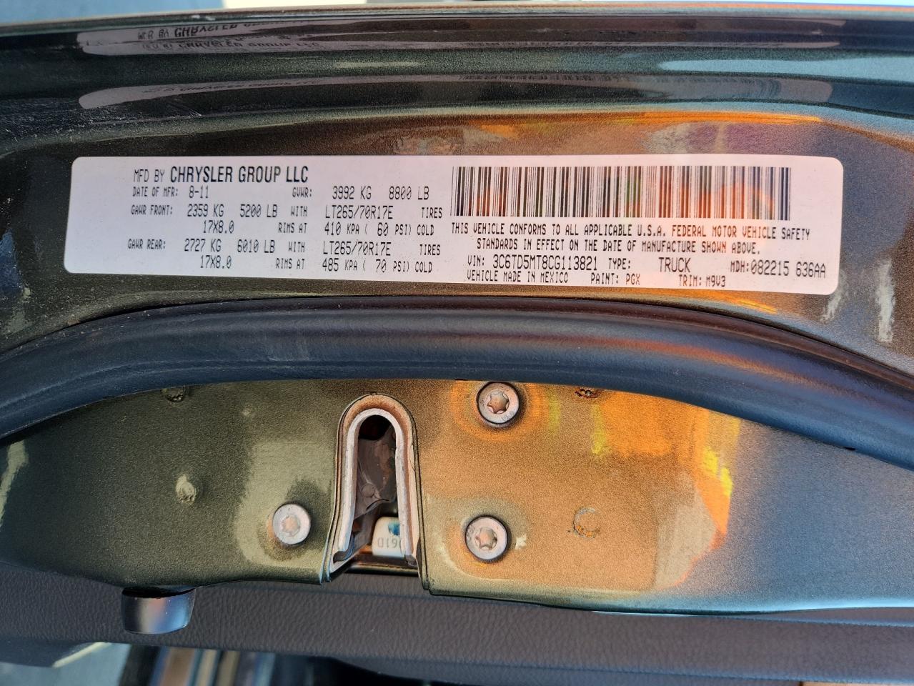 DODGE RAM 2500 5.7 2012 р.в., 4x4 з заднім приводом (3C6TD5MT8CG113821) з США