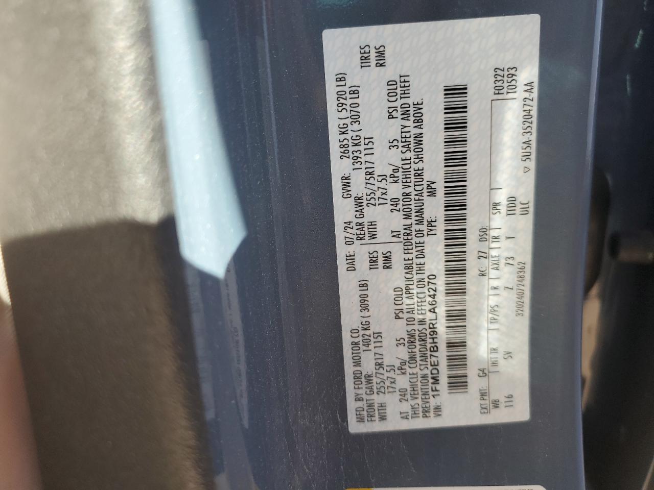 Колір СинійЦиліндри 4Привід 4x4 з заднім приводомVIN 1FMDE7BH9RLA64270Стан Заводиться та їде (перевірено)Ушкодження Передня або задняДата аукціону 2025-11-07