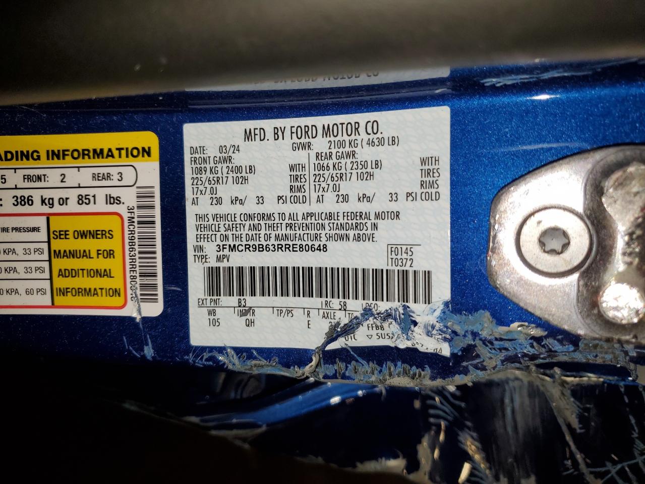 Колір СинійЦиліндри 3Привід 4x4 з переднім приводомVIN 3FMCR9B63RRE80648Стан НевідомоУшкодження Передня або задняДата аукціону 2025-11-03