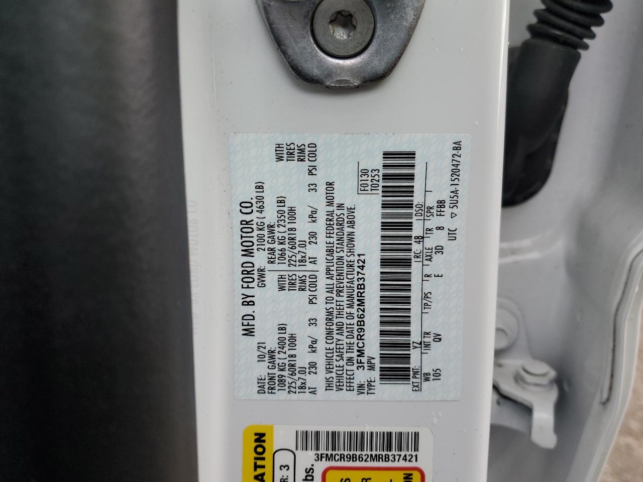 Колір БілийЦиліндри 3Привід 4x4 з переднім приводомVIN 3FMCR9B62MRB37421Стан Заводиться та їде (перевірено)Ушкодження Задня