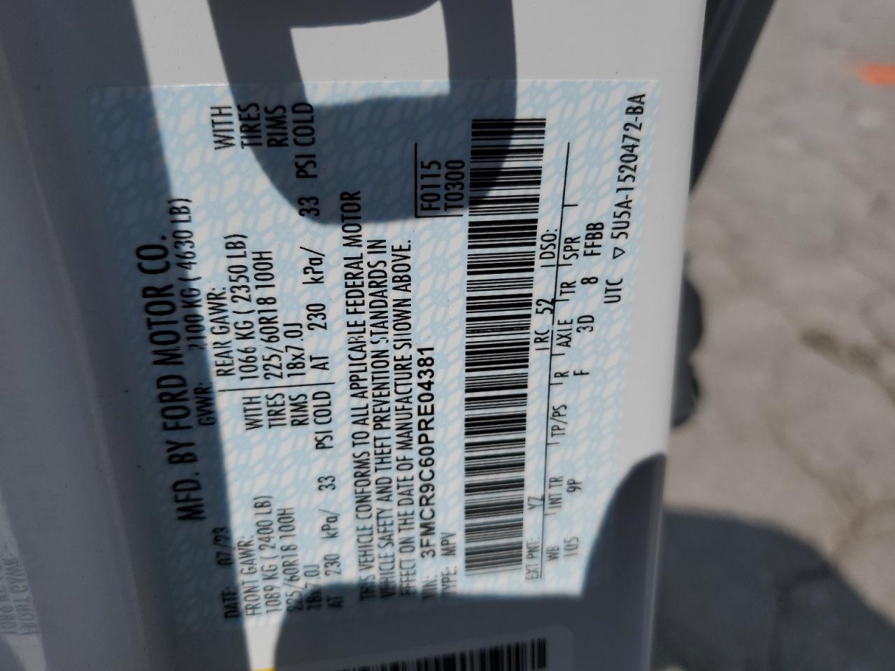 FORD BRONCO SPORT 1.5 2023 р.в., 4x4 з переднім приводом (3FMCR9C60PRE04381) з США