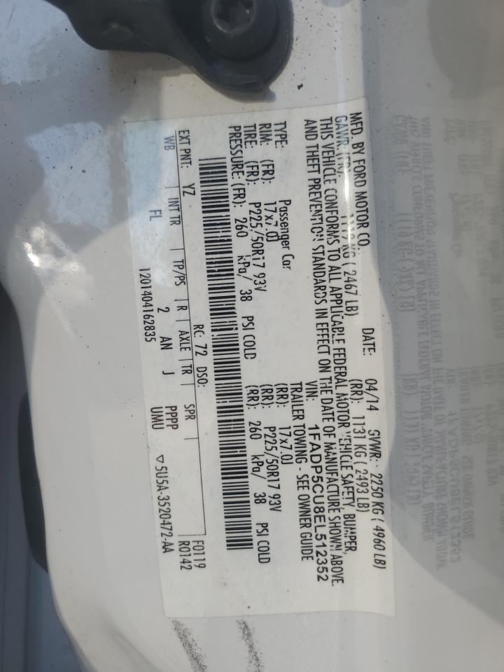 Колір БілийЦиліндри 4VIN 1FADP5CU8EL512352Стан Заводиться та їде (перевірено)Ушкодження Механічні пошкодженняДата аукціону 2025-11-06
