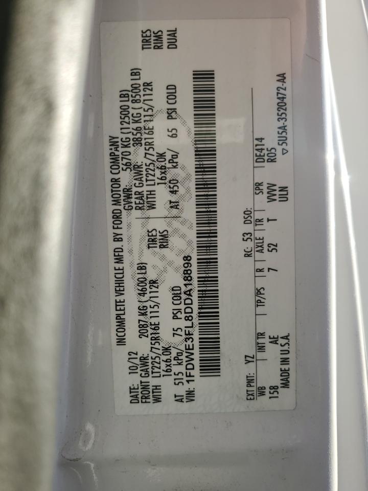 Колір БілийЦиліндри 8Привід Задній привідVIN 1FDWE3FL8DDA18898Стан НевідомоУшкодження Передня або задня