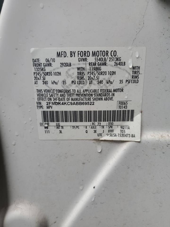 Колір БілийЦиліндри 6Привід Повний привідVIN 2FMDK4KC9ABB69522Стан НевідомоУшкодження Передня або задня