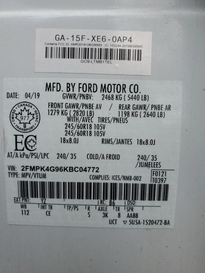FORD EDGE 2.0 2019 р.в., Повний привід (2FMPK4G96KBC04772) з США