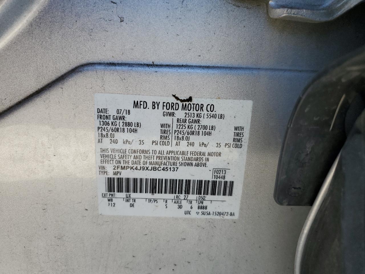 FORD EDGE 2.0 2018 р.в., Повний привід (2FMPK4J9XJBC45137) з США
