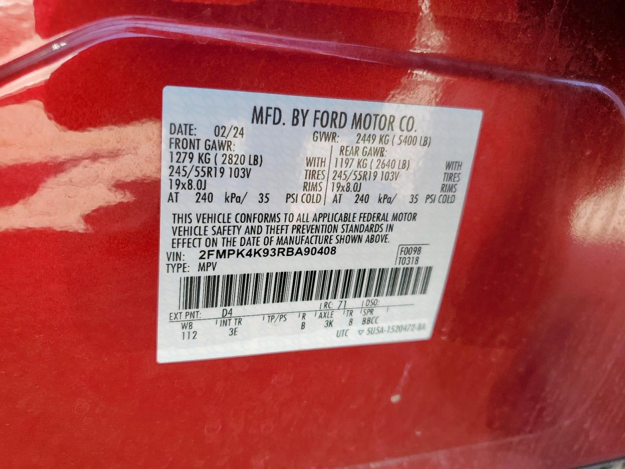 Колір ЧервонийЦиліндри 4Привід Повний привідVIN 2FMPK4K93RBA90408Стан ЗаводитьсяУшкодження Передня або задняДата аукціону 2025-11-03