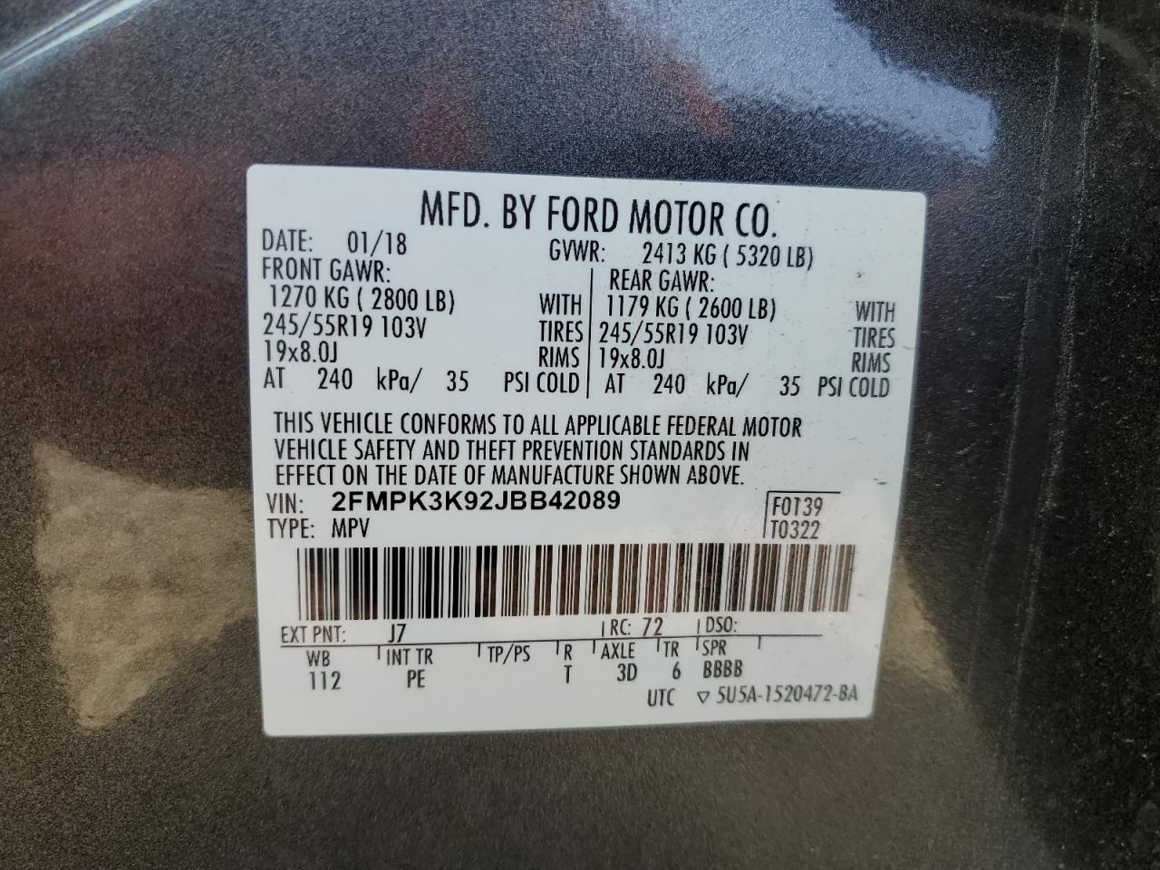 Колір СірийЦиліндри 4VIN 2FMPK3K92JBB42089Стан Заводиться та їде (перевірено)Ушкодження НезначніДата аукціону 2025-11-04