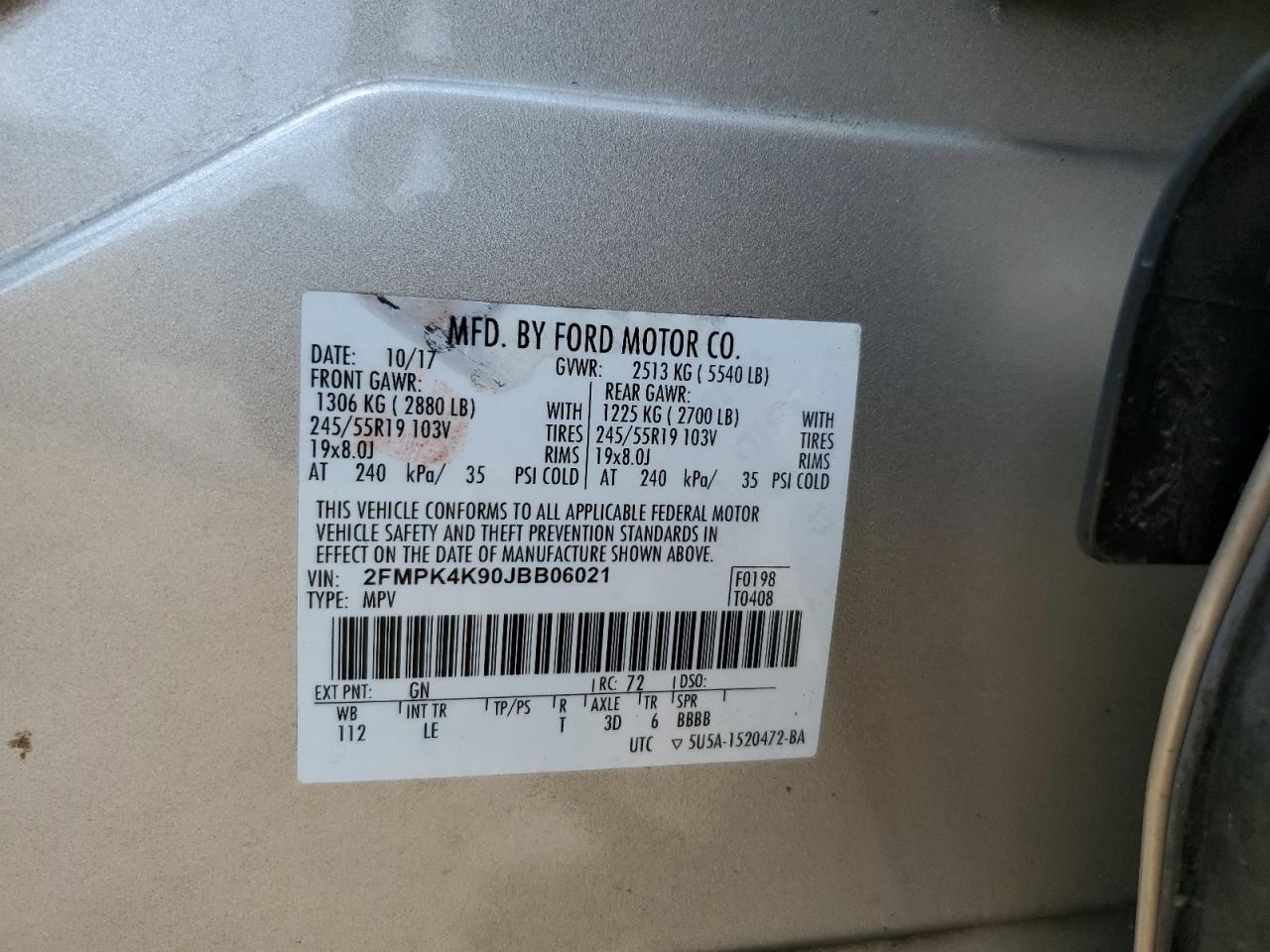 FORD EDGE 2.0 2018 р.в., Повний привід (2FMPK4K90JBB06021) з США