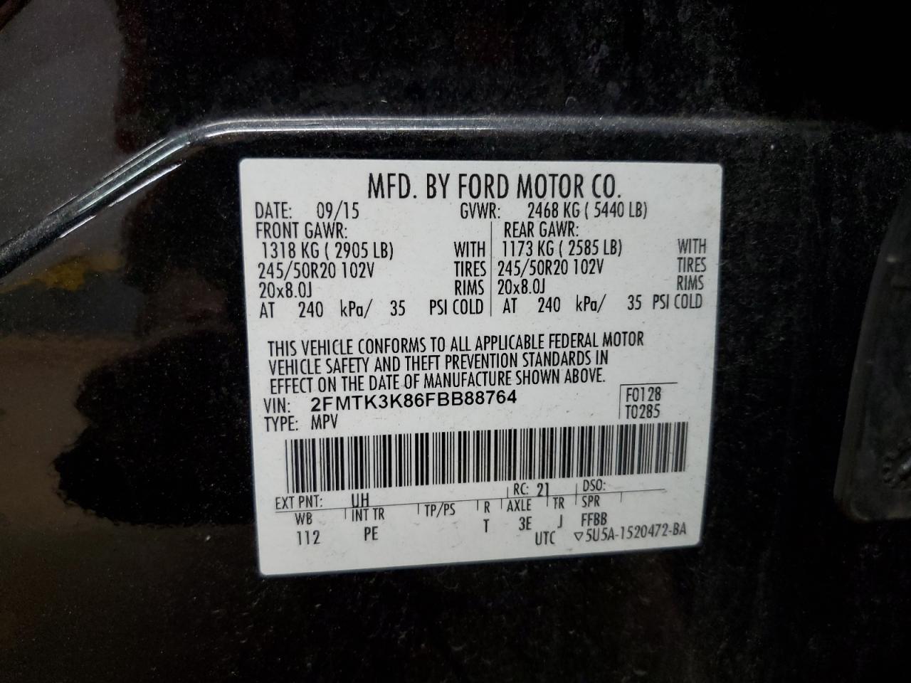 FORD EDGE 3.5 2015 р.в., (2FMTK3K86FBB88764) з США