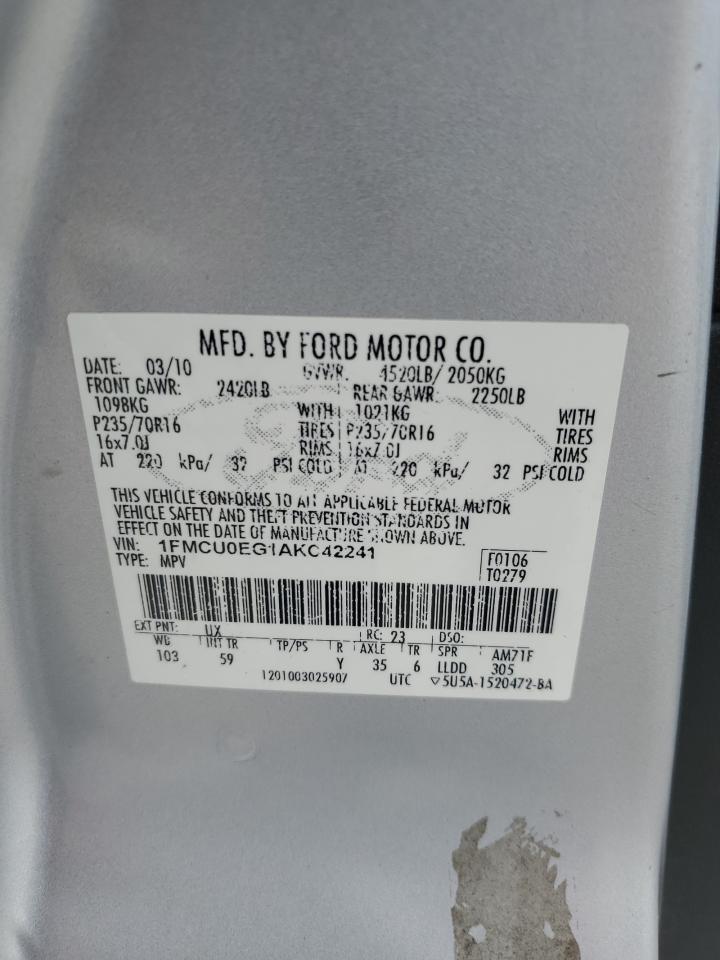Колір СрібнийЦиліндри 6VIN 1FMCU0EG1AKC42241Стан ЗаводитьсяУшкодження З боків