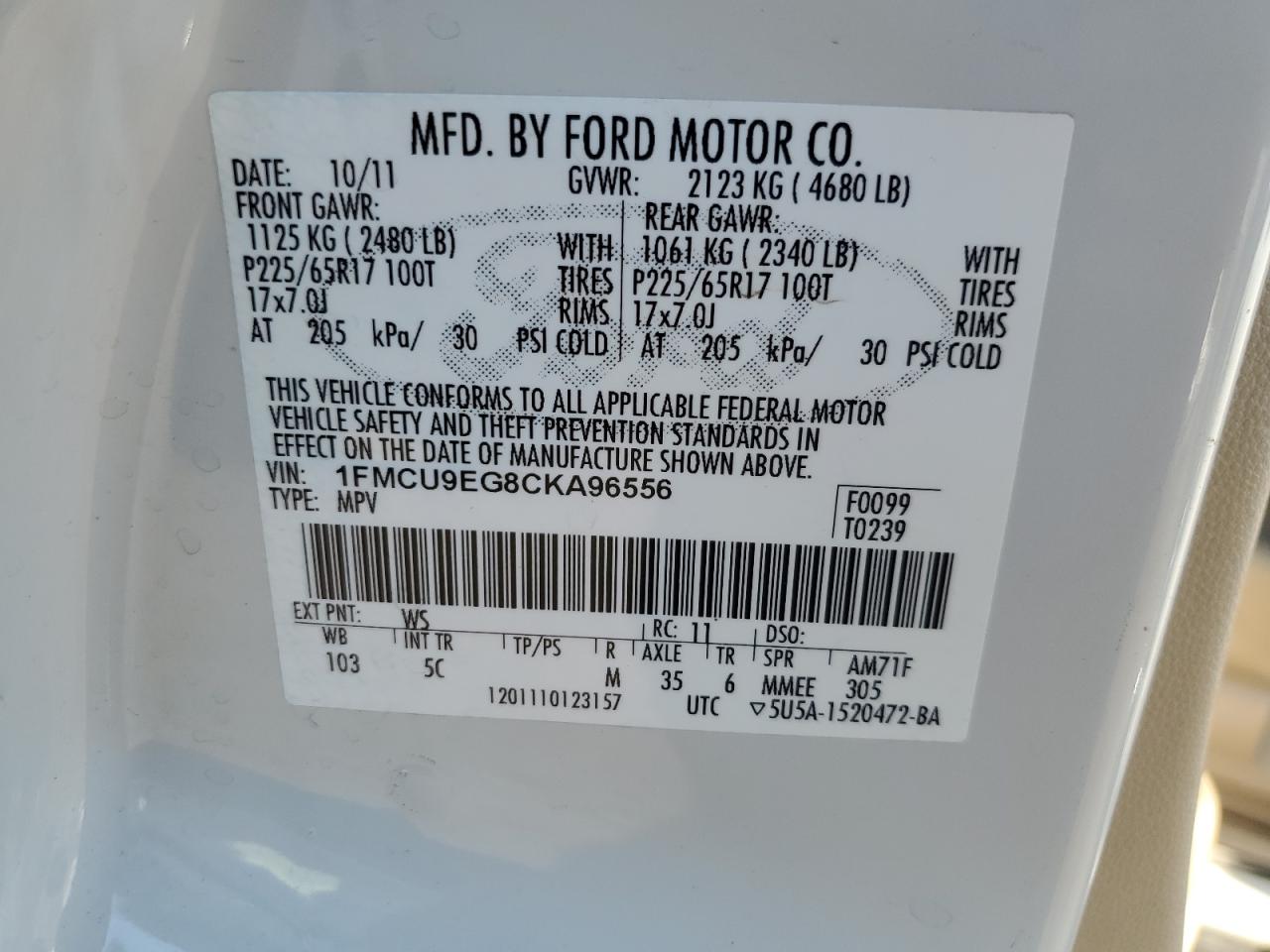 Колір БілийЦиліндри 6Привід Повний привідVIN 1FMCU9EG8CKA96556Стан Заводиться та їде (перевірено)Ушкодження З боків